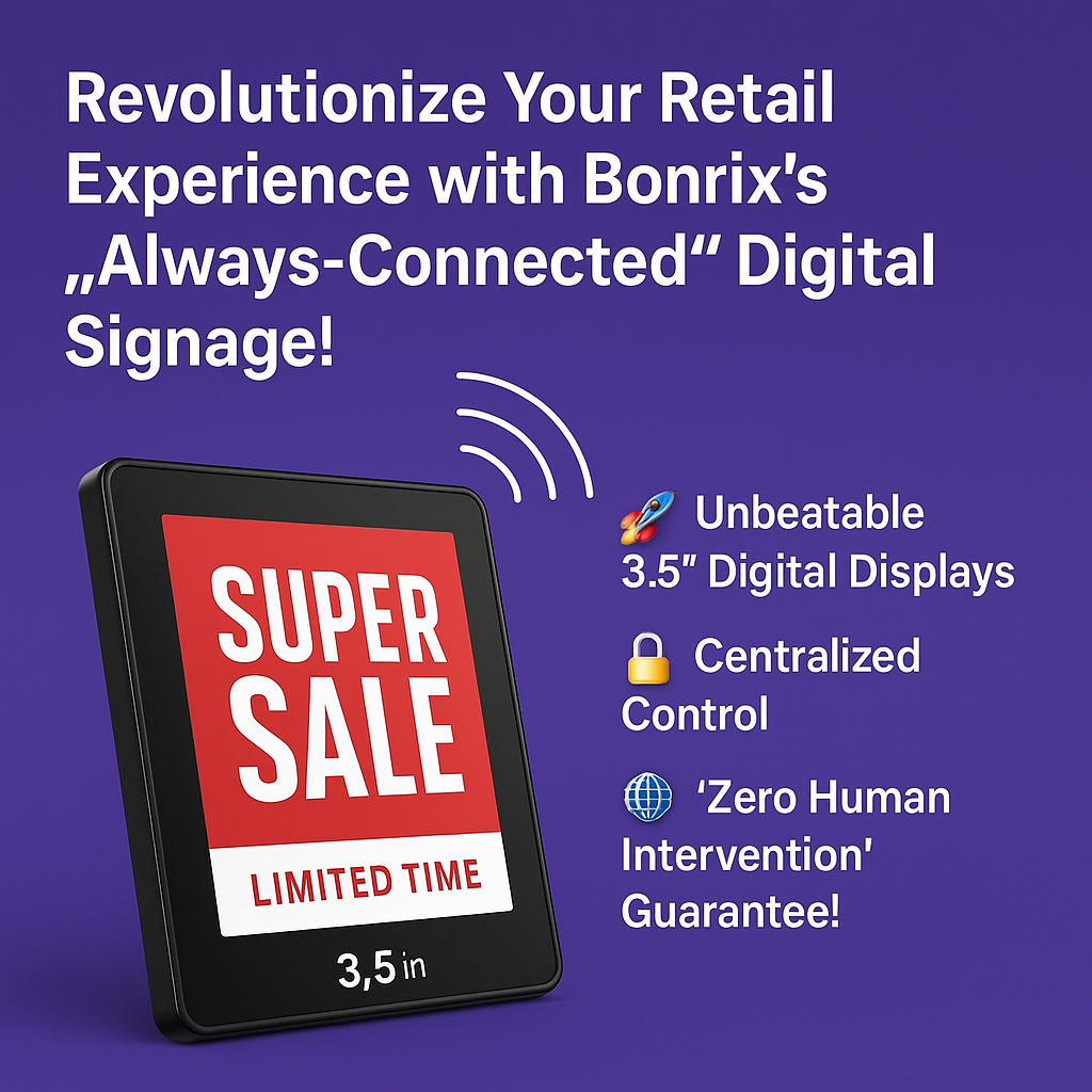 At Bonrix Embedded Innovations in Ahmedabad, Gujarat, we’ve revolutionized the future of retail and billing counter displays with our cutting-edge small-format digital signage solutions . From compact 3.5-inch screens to dynamic 10.1-inch displays , our products blend sleek design with advanced technology, tailored for retail showcases, billing counters, and smart payment ecosystems.