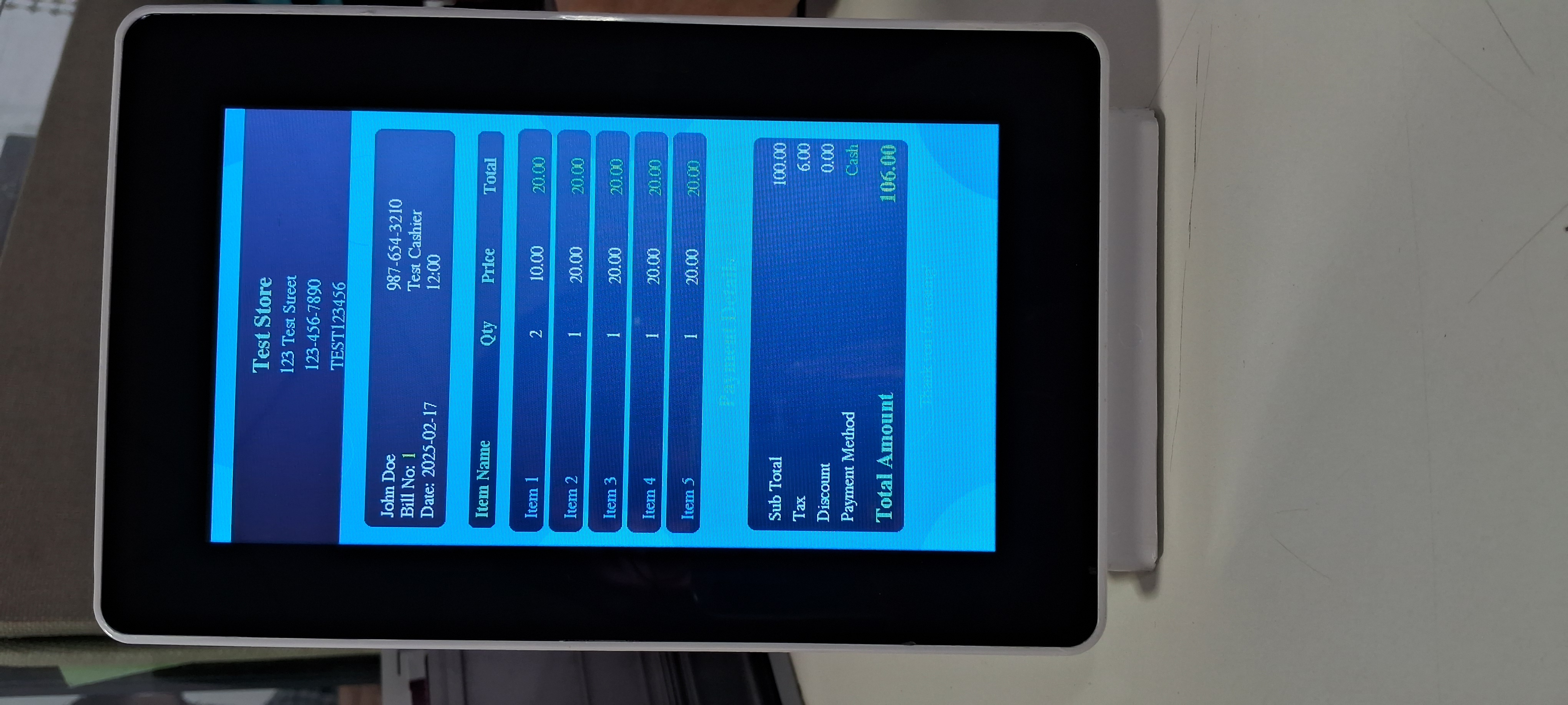 itemized bill details, the total amount, and transaction status clearly to the customer,
