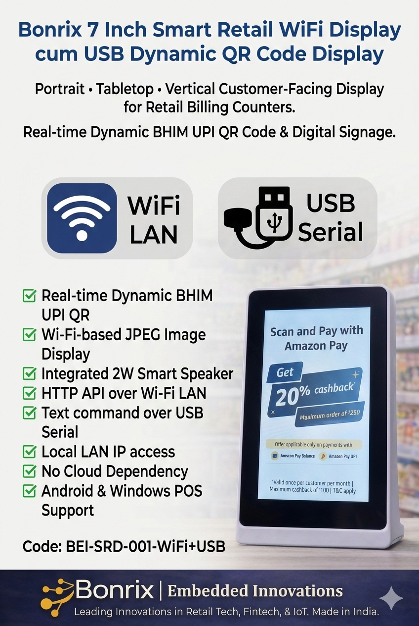 ๐ Proudly Introducing: Bonrix 7 Inch Smart Retail WiFi Display cum USB Dynamic QR Code