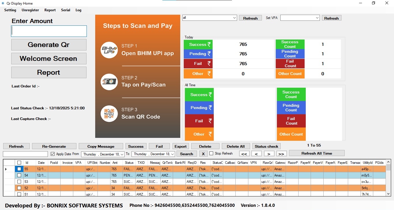 Displays real-time transaction details and generates dynamic UPI QR codes instantly from your