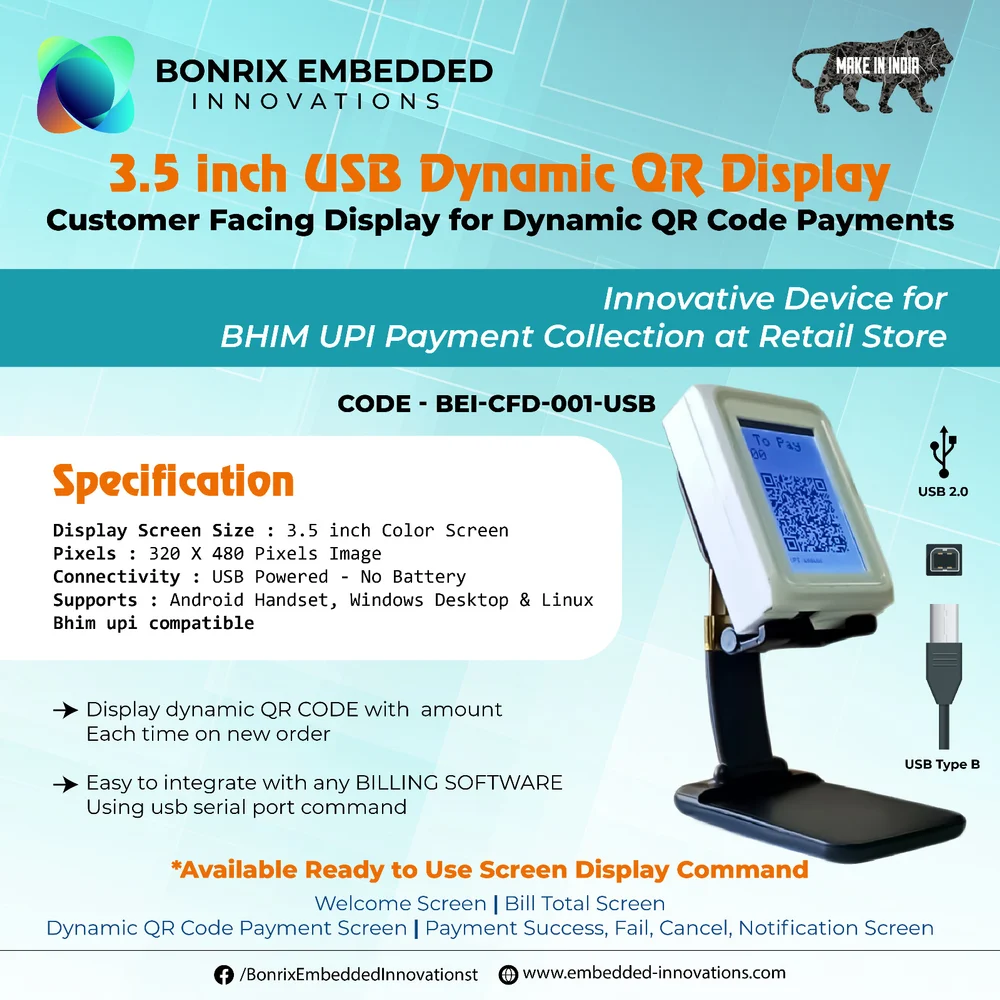 Dynamic QR Code Payments Innovative Device for BHIM UPI Payment